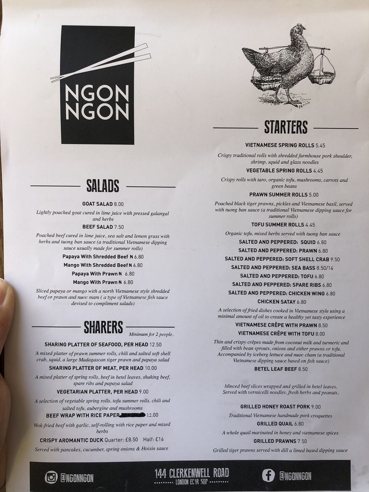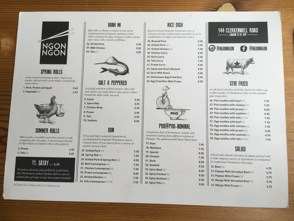 Welcome to Ngon Ngon, a delightful Vietnamese eatery nestled in the heart of London at 144 Clerkenwell Road. This spot promises a culinary journey with its extensive menu, featuring authentic dishes like duck pho and rare beef pho, both praised for their deep, flavorful broths.